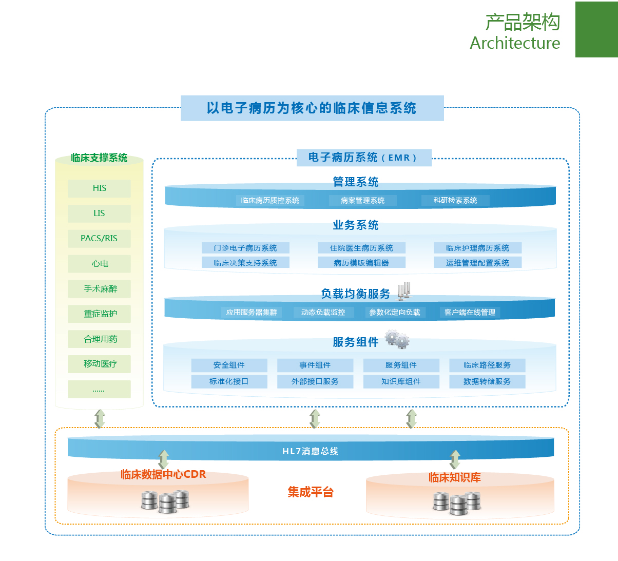 2 大核心: 臨床數(shù)據(jù)中心(CDR)、臨床智能知識(shí)庫(CDS)